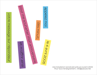 Va-t-on m'appeler pour mon anniversaire ? J'inverse alors l'idée de surprise et d'attente en demandant expressément aux gens de me le souhaiter. Les messages sont enregistrés sur un répondeur.