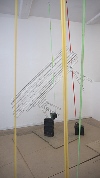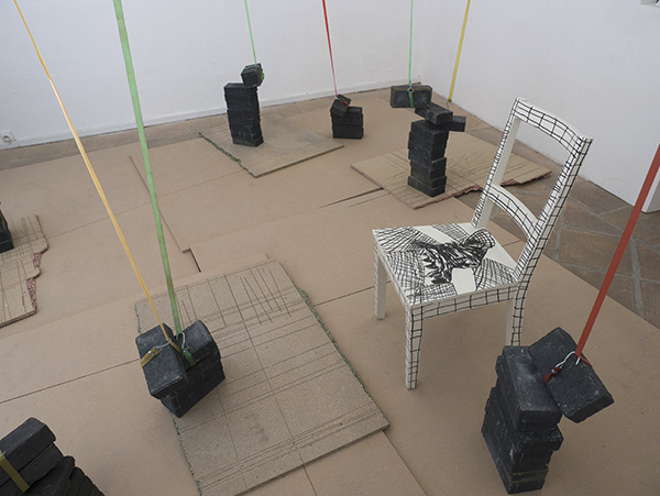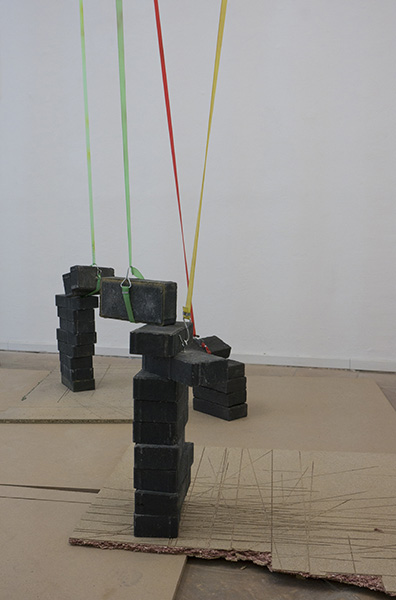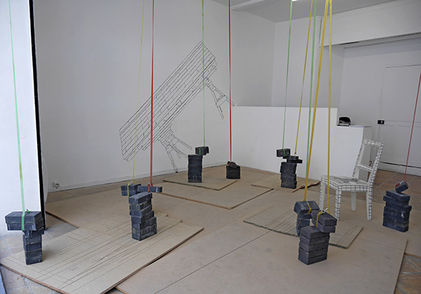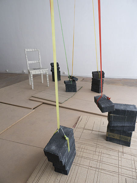 La question initiale dans le travail de Catherine Melin est celle du point d’appui. Etant donnés l’étendue et tout ce qui la ponctue, d’où partir, par où commencer, par où passer ? L’espace tout autour de nous nous contient et contient toutes choses : celles qui sont fixes et celles qui se meuvent, celles qui étaient là et celles qui ont été ajoutées par les hommes, lesquelles sont devenues aujourd’hui incroyablement nombreuses et proliférantes. Cette propension à en rajouter sans fin et à remplir les intervalles laissés vacants, nous pouvons y voir la forme moderne de ce que Wilhelm Worringer dans Abstraction et Einfühlung, un livre bien inutilement oublié aujourd’hui, caractérisa pour les temps primitifs en parlant de geistiger Raumscheu, ce que l’on peut traduire par « angoisse spirituelle devant l’espace » ou, plus simplement, « crainte de l’esprit devant l’espace ». Crainte qui est comme la version panique, elle-même affolante, d’une occupation pourtant nécessaire : pour que l’espace s’incarne et échappe au vide qui est sa tentation, il lui faut des objets et des formes, toute une écriture de lignes et de surfaces qui le traduisent dans une langue que le corps peut apprendre et comprendre. Habiter, vivre, c’est traverser avec son corps les espaces toujours différents de cette langue parlée par l’espace. Pour cette traversée il faut des intervalles, des points d’appui et des prises : et le monde entier, à commencer par l’univers urbain, consiste en un immense dispositif discontinu au sein duquel intervalles, prises et points d’appui, isolément ou en série, forment une syntaxe que chaque locuteur ou passant interprète à sa manière. En droit tout au moins, puisque dans les faits il arrive fréquemment que cette syntaxe, engorgée et répétitive, ne libère que des phrasés sériels programmés, qui répondent à la pression constante de la domination. Mais il est des points de monde qui sont des échappées ou des tremplins, des nœuds en train de se dénouer, où cette syntaxe se voit et redevient palpable, et dans un phrasé justement, mais qui aurait alors sauté hors du cadre. Les tubulures colorées d’une échelle, d’une passerelle, d’une balançoire ou d’un toboggan sont, et cela c’est Catherine Melin qui nous l’indique, de tels phrasés.