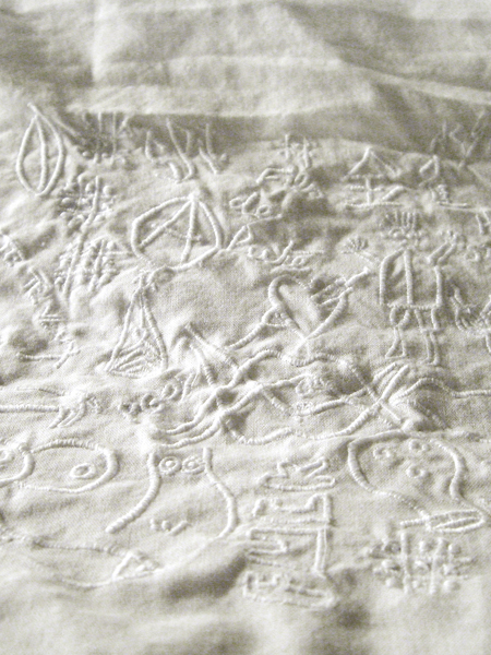 Broderie réalisée avec le soutien de l’Association Les Petites Bobines, Vaison la Romaine et de la Galerie du Tableau, Marseille