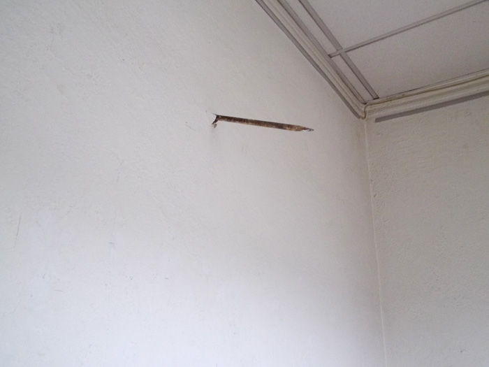 La pointe sort du mur, le geste radical témoigne d’une violence, convoque les sens.