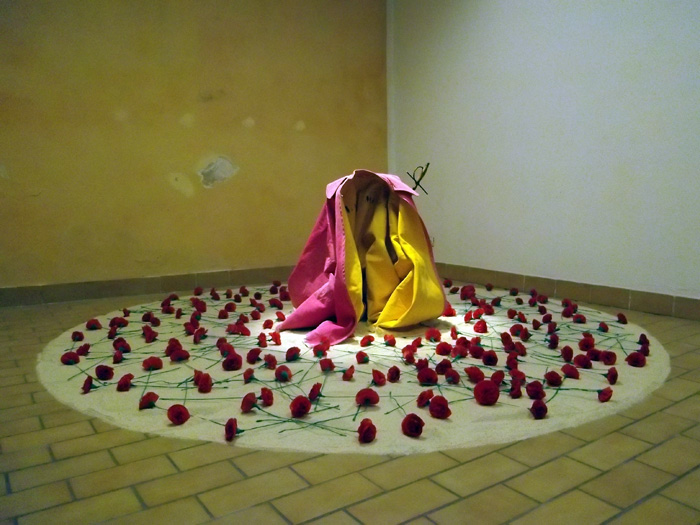 Dans cette installation, on passe de la 1ere à l’ultime phase (tercio) de la corrida, avec la cape de Brega et l’estocade simulée.
