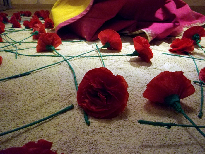 Ici les œillets couvrent le sable de l’arène, de la scène. Dans le langage des fleurs il est le symbole de l'amour, mais il jouit d'une très mauvaise réputation. On l'accuse d'attirer le mauvais sort, d’être lié à la mort. Il n'y a qu'en Espagne que la fleur jouit d'une bonne réputation.