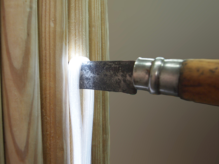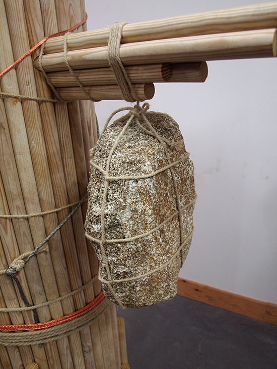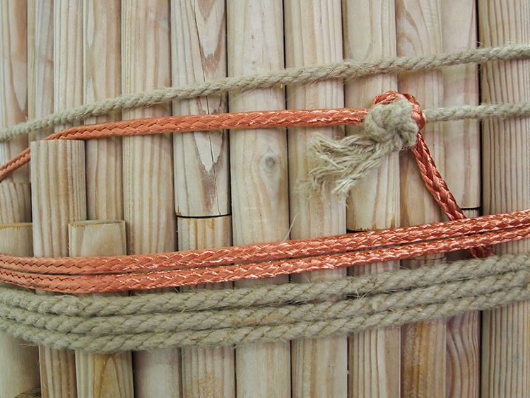 Bâtons de séchage en pins des Landes, cordes en chanvre, tresses en cuivre étamé, tresse en cuivre rouge, granite, couteau et fibre optique Commande privée de la société de Salaisons pour le Hall de la SACOR Villefranche de Rouergue - Aveyron (12)
