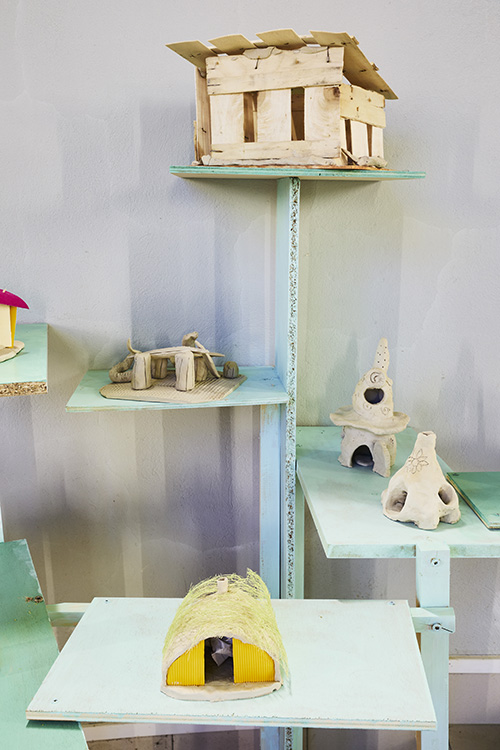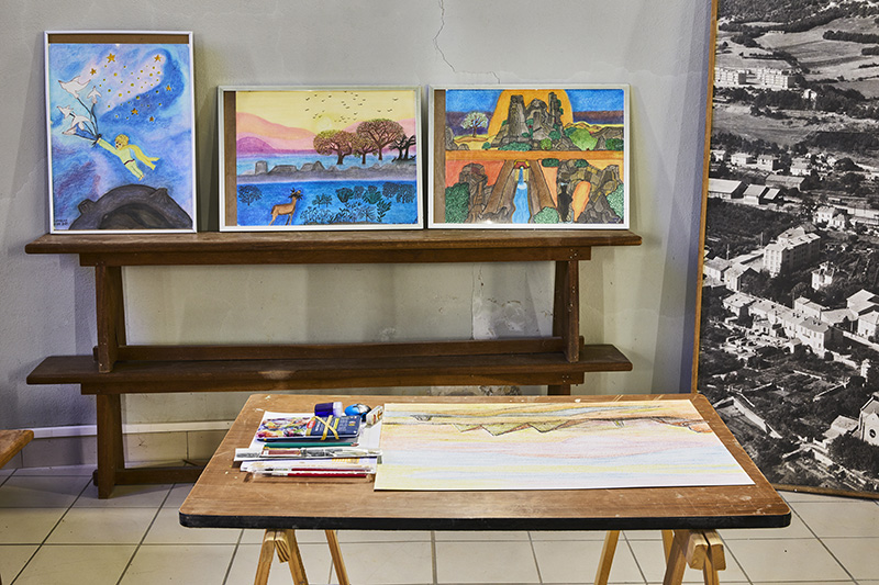 Tous ces objets faisaient partie de l’exposition comme les mangeoires à oiseaux qui ont été réalisées par les enfants de l’hôpital de jour des Isles, ainsi que les dessins d’un patient qui s’est installé sur une table avec ses crayons de couleur et qui venait dessiner avec Pascale Mijares.