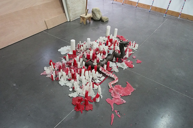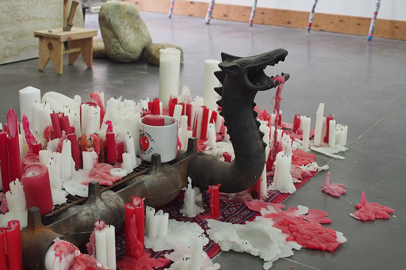 Bougies fondues, radiateur en fonte, gargouille, grille, tapis