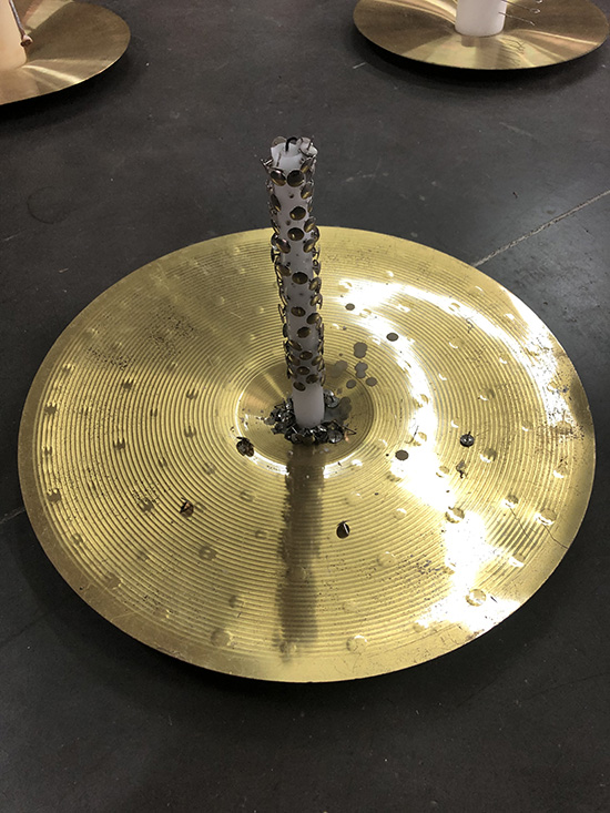Cymbales, bougies, clous, paraffine