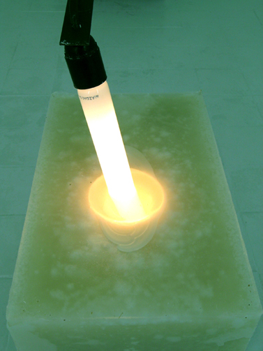 Parafine, lame d’acier, ampoule électrique linestra, câble, bois