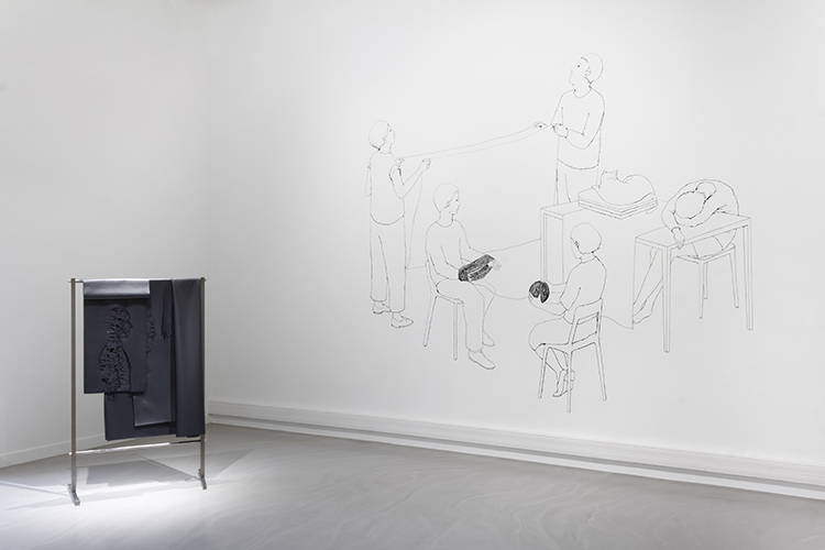 Transmettre, tisser, joindre, 2020 Dessin mural, 270 x 360 cm Vue de l’exposition Nous habitons ici ensemble, Musée d'art contemporain, Montélimar, 2020 Voir des détails