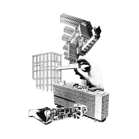 The original intention was to construct the building as a rack structure into which the apartments would slot like drawers, each being a separated unit. The glass elements on top of the model represent the funnels and modules set into the roof of the building which is an accessible terrace with a swimming pool, a gymnasium and an open air theatre.