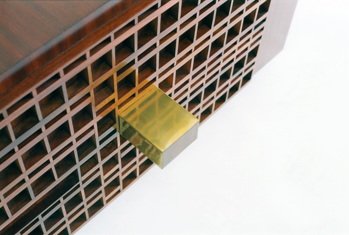 Par delà la «critique» architecturale, cette pièce fait aussi écho, malgré son apparente incongruité au sein de mon corpus, à tout un pan de mon travail qui sattache à la question du secret, à la manière dont celui-ce se loge, se sédimente ou se déploie (la figure du tiroir, poncif de la représentation du secret, condensant bien sûr cela), ainsi quà un grand intérêt pour le mobilier et la façon dont celui-ci prend place au sein de nos existences.