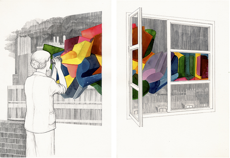 Dyptique, crayon et encre sur papier, 21 x 29 cm chaque |