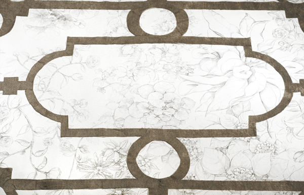 Ainsi, la nature de l'œuvre donne à voir les possibles extensions du jardin d'agrément qui, à travers les modèles décoratifs reproduits sur les textiles ou encore les papier-peints, pénètre la sphère domestique."
