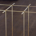 Cet ensemble forme par incidence un environnement aux accents domestiques : il pourrait s’agir d’un décor, de mobilier, de tenture... Les registres sont croisés et ces pièces tirent de l’ambiguïté de leur nature un étoffement de leur signification qui, se refusant au cantonnement dans une catégorie ou l’autre, tire partie de l’hybridation ainsi assumée. |
