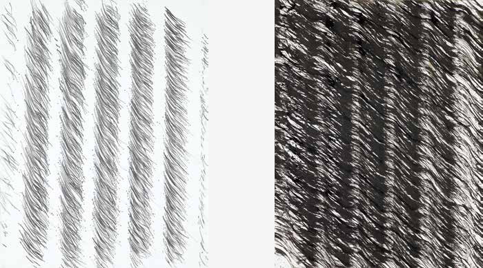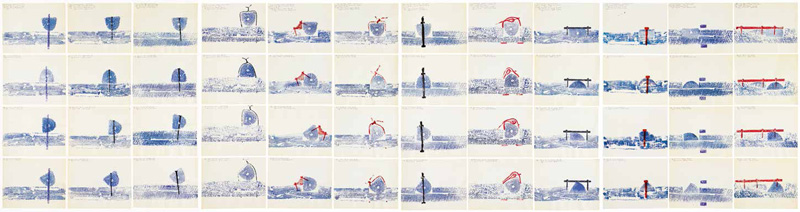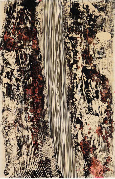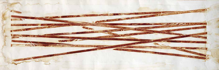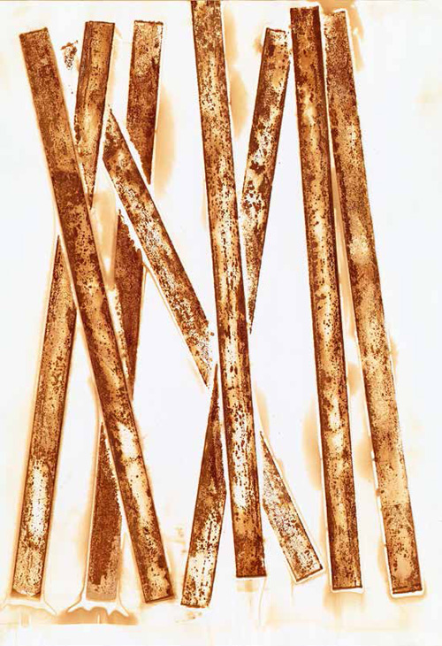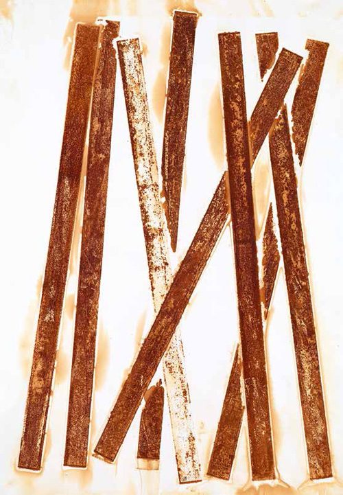 Empreintes de onze barres d’acier oxydé, 4,5 x 500 cm