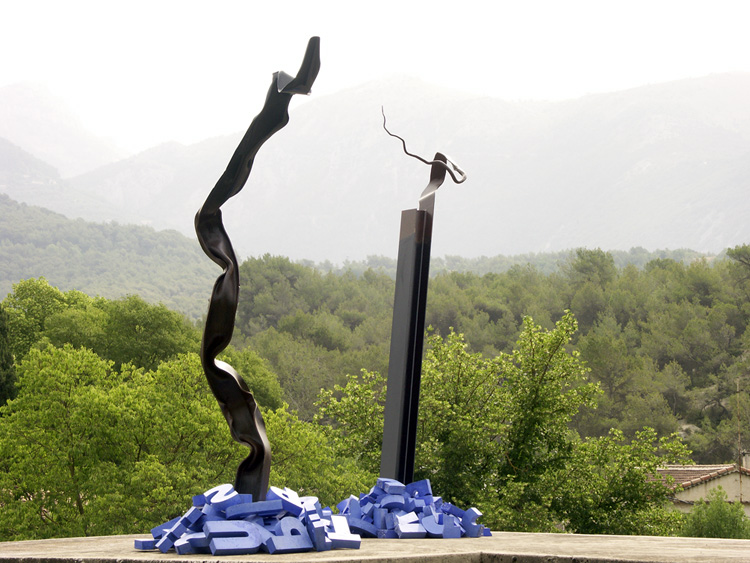 HEA de 220 mm forgé, oxydé ou peint, lettres brisées en béton coloré, 388 x 220 x 200 cm