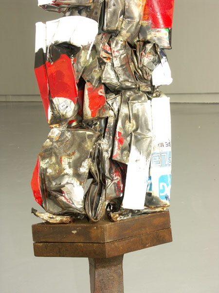 Pots de peinture écrasés, fer carré oxydé, acier oxydé, 312 x 237 x 114 cm