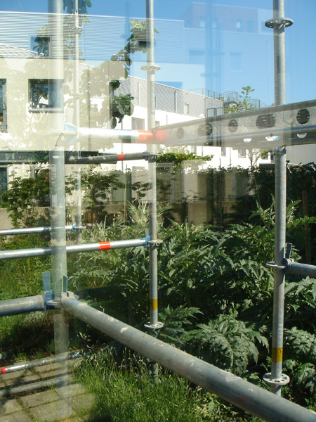 Installation à base d’échafaudages permettant de requalifier l’espace privé et de créer un nouvel espace public.