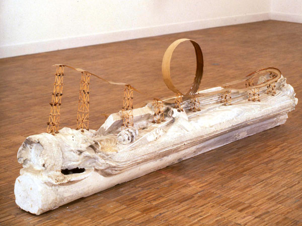 Copie plâtre d’une statue colonne de la cathédrale de Chartres, allumettes, cire, papier kraft, 250 x 55 x 70 cm