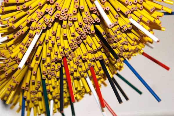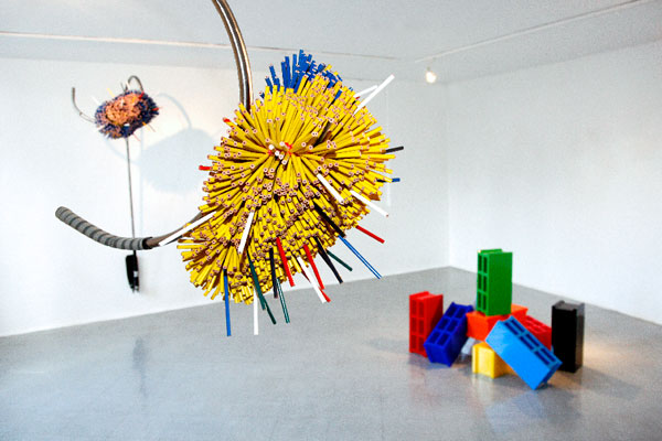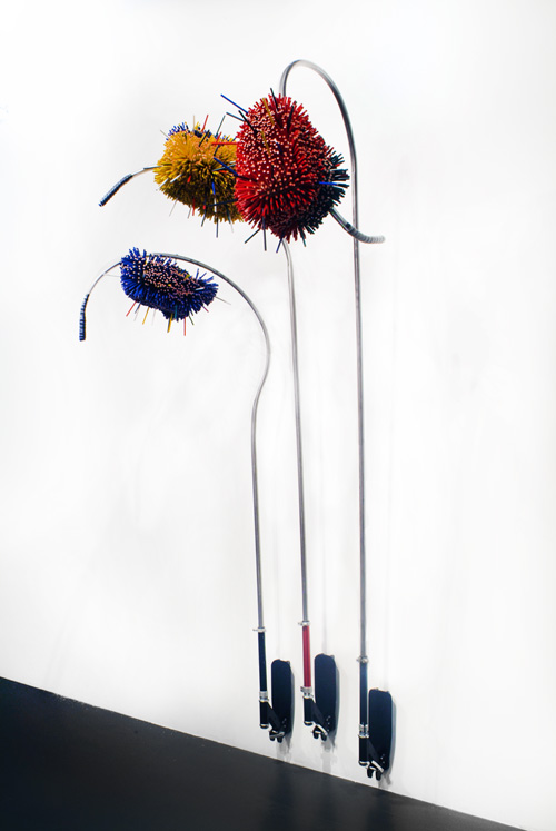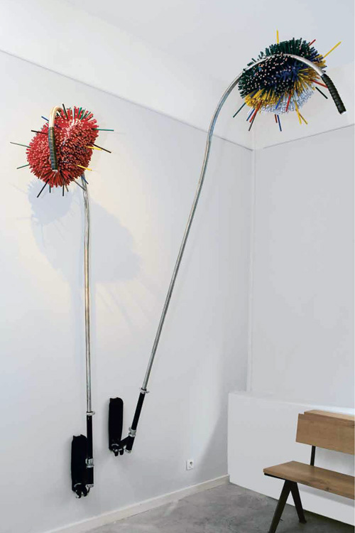 Crayons, résine polyuréthane, selle de vélo, tube métallique, trottinette, grip, dimensions variables