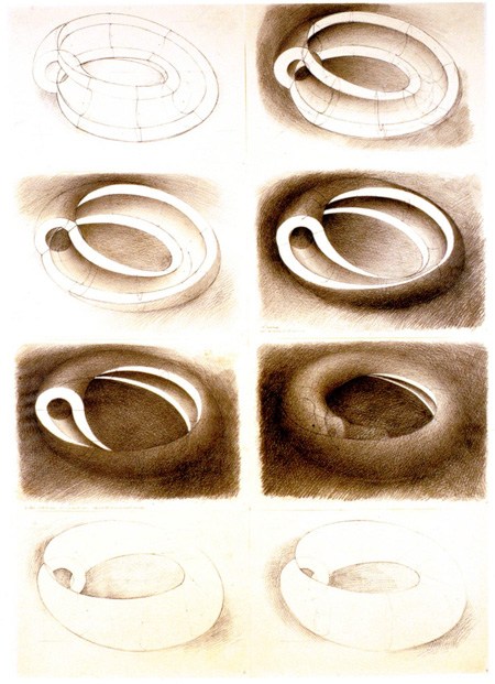 Étude pour Tore III-2 / Plein de vide 1991 Crayons de couleurs sur photocopies, format A4 chaque, 59,4 x 84 cm