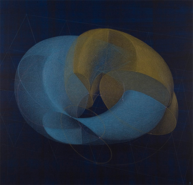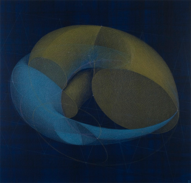 Crayons de couleurs sur papier préparé à l'acrylique, 4 x (47 x 45 cm)