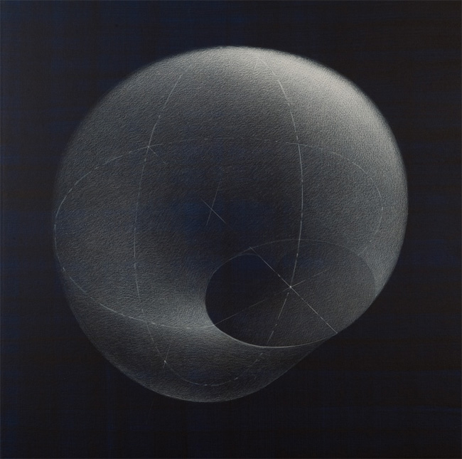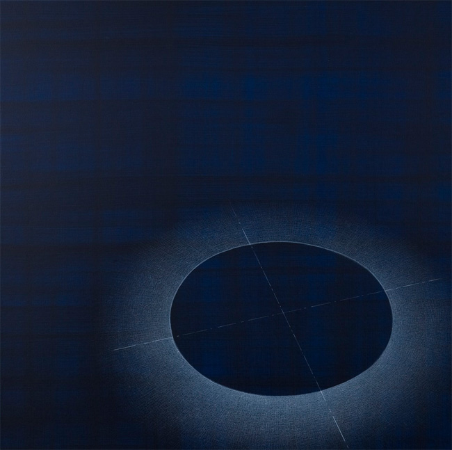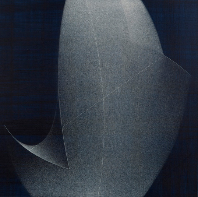Crayons blancs sur papier préparé à l'acrylique, 4 x (50 x 50 cm)