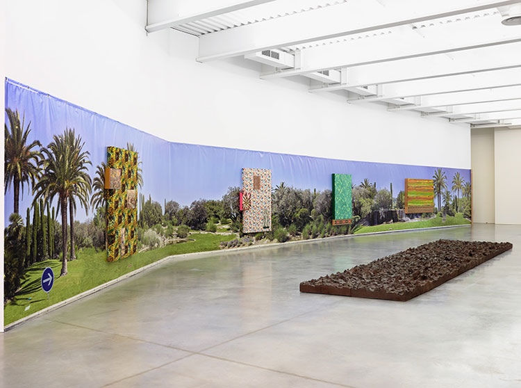 Pour Pascal Pinaud, l’exposition est un médium à part entière dont il se saisit pour produire des manières de voir et de penser l’art. Tour à tour, ses pièces peuvent être présentées dans un espace couvert de tapis, écrin de motifs qui met à l’épreuve la rhétorique décorative ; stockées dans un silo, réserve d’une collection ; ou placées dans un meuble à dessin, à consulter. Au fil du parcours, des liens se tissent entre les séries mais aussi avec les oeuvres de la collection du Frac Bretagne exposées sur un paysage déplié de Nice.