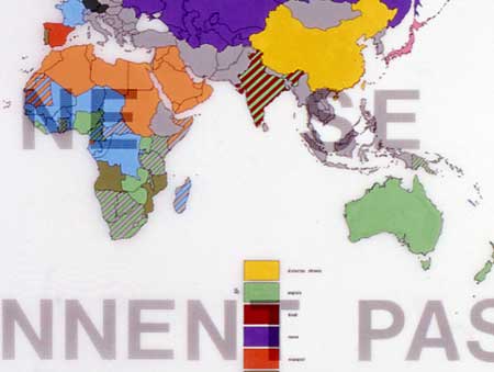 Encre, acrylique et Letraset sur film polyester, 195 x 110 cm