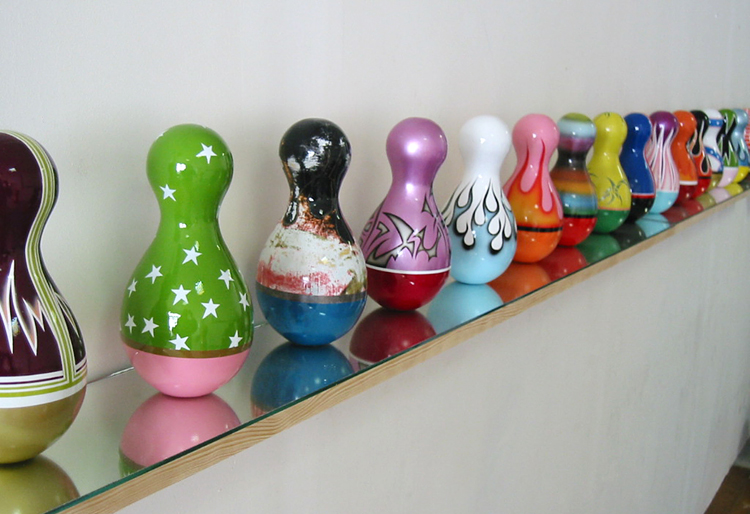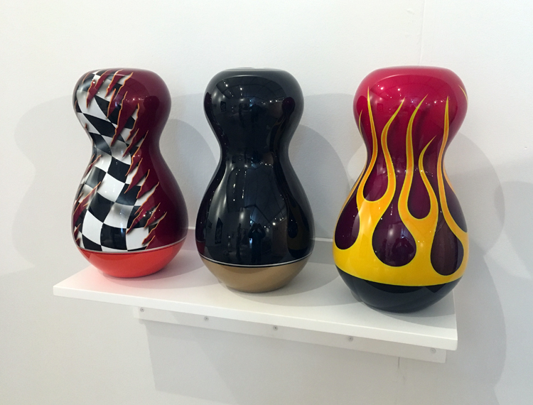 18 pièces uniques, Résine polyester et peinture de carrosserie, 30 x 12 x 12 cm