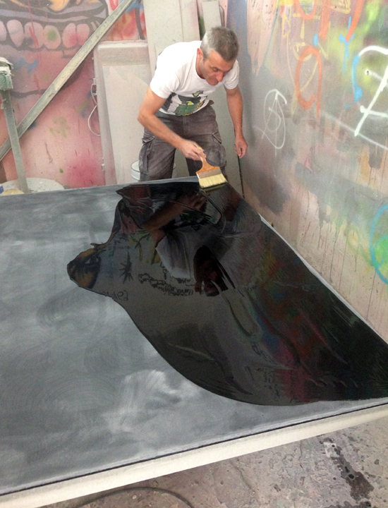 Peinture à l'huile sur toile, fibre de verre et résine polyester, 163 x 130 cm |