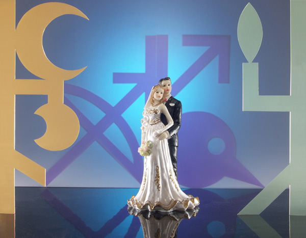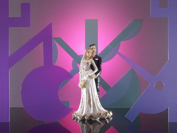 La mise à l'échelle un du dispositif, procède de la même manière : à partir du choix fait dans le catalogue de signes, les protagonistes se mettent en scène, s'intercalent et incarnent les mariés dans ce décor donné.