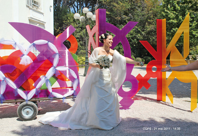 Du 19 au 30 mai 2011 dans le cadre du Festival des arts éphémères, nous transporterons nos éléments dans le parc de Maison Blanche. À l’aide d’un chariot conçu à cette occasion, nous arpenterons le parc et ses alentours pour disposer les éléments de l’alphabet en fonction des lieux rencontrés : bassins, escaliers, pelouses, places etc. “Rébus vivants, charade de chair”, voilà ce qu’ils pourront être en produisant des effets “étranges, hypnotiques, comiques, ennuyeux, tarte, un peu tout cela.”