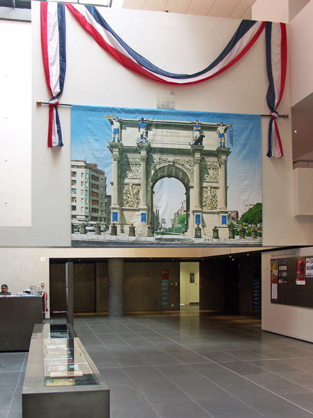 Installation et pavoisement du hall des Archives Départementales, à l'occasion de l'exposition Jours de fête en Provence