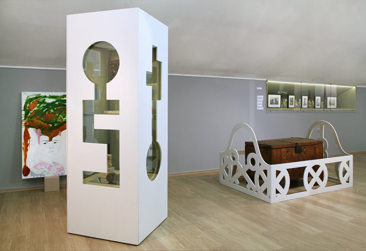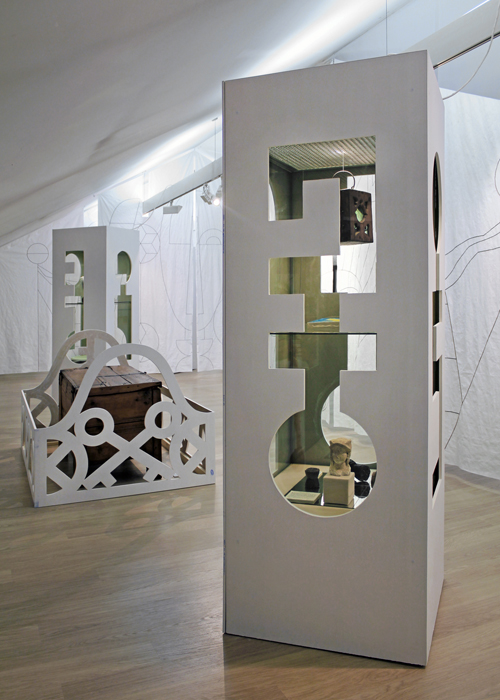 La conception de cet espace doit beaucoup à Kurt Schwitters et à cette construction perpétuelle au gré de l’exil que fut le Merzbau, tel que les seules photos qu’il en reste et les témoignages nous le rendent imaginable : L’œuvre, « inachevée par principe », après avoir envahi la presque intégralité de l’espace domestique, ne cessait de se renouveler. En plus de cet assemblage architectural, Kurt Schwitters avait intégré aux cavités de sa structure des sortes de petits mausolées, des grottes qui avaient pour but d’héberger des scénographies diverses organisées autour de fétiches. Ces saynètes n’avaient pas pour vocation d’être conservées, mais bien au contraire, enfouies et avalées par le processus. Couche par couche, Kurt Schwitters venait nourrir les murs de reliques, refermant sur elles une nouvelle strate qu’il appelait « passer […] sur le cadavre de l’objet ». Le Merzbau fonctionnait incontestablement comme un journal intime. Il était devenu le tombeau d’une vie, telle une pyramide où sont ensevelis quelques trésors du passé, embaumés et conservés à l’épreuve du temps. Les murs étaient devenus des palimpsestes et la structure une mémoire. 2