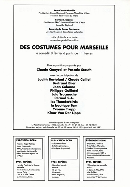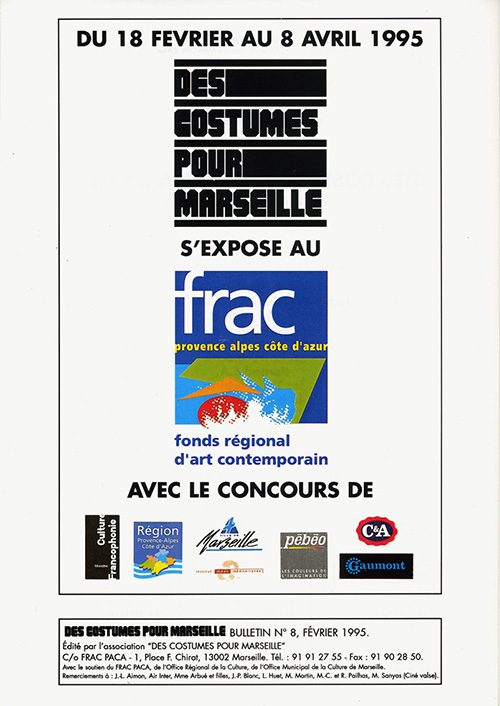 Vue de l'exposition Des costumes pour Marseille, Frac Paca, Marseille, 1995 |