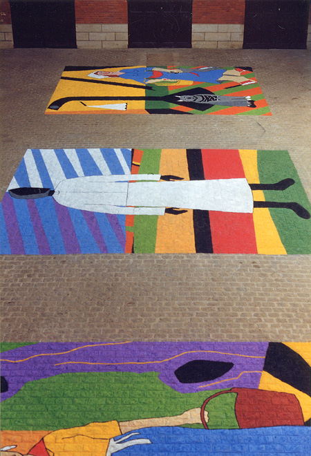 Craie sur sol pavé, 5 x 7 m chacune