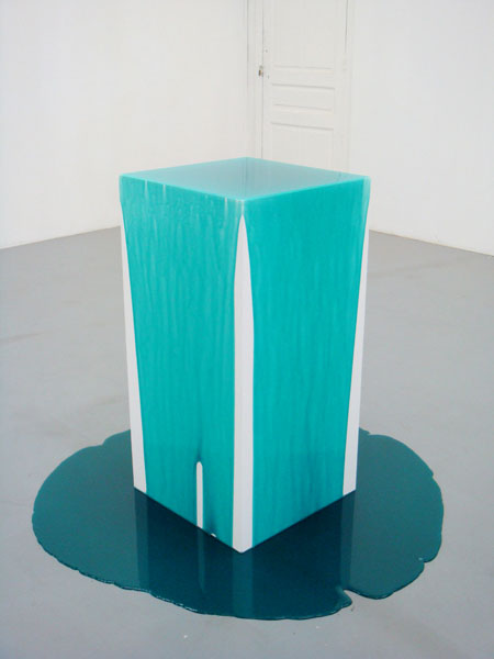 Afterhour 2008 Bonbon fondu sur socle en bois, 50 x 50 x 100 cm Vues de l'exposition My Space à la Galerie de l'Ecole Régionale des Beaux-Arts de Rennes, 2008