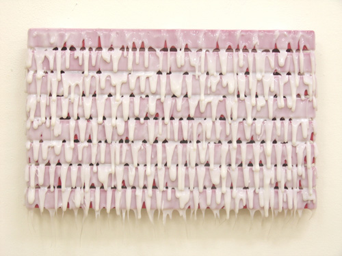 Colle thermofusible sur caillebotis en bois peint, 39 x 63 cm