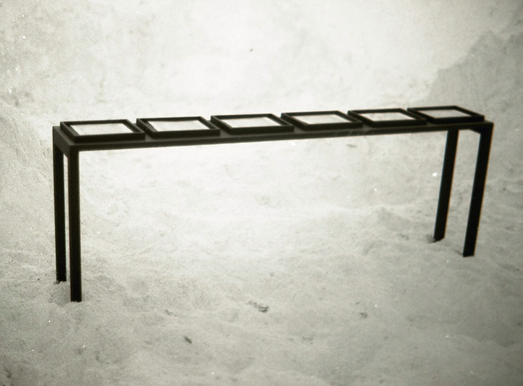 Vues d’installation avec matrice en bois et coffrets noirs protecteurs du jour