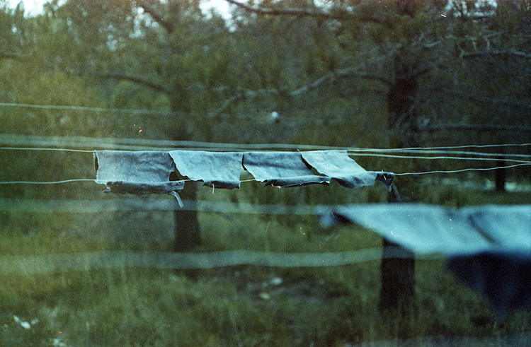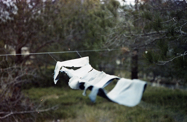 Cette mise en espace réintègre dans l’espace physique extérieur les éléments présents dans la nouvelle. Les morceaux éclaircis chaque nuit sous les rayons de la lune sont ici révélés à la lumière diurne dans une trame suspendue.