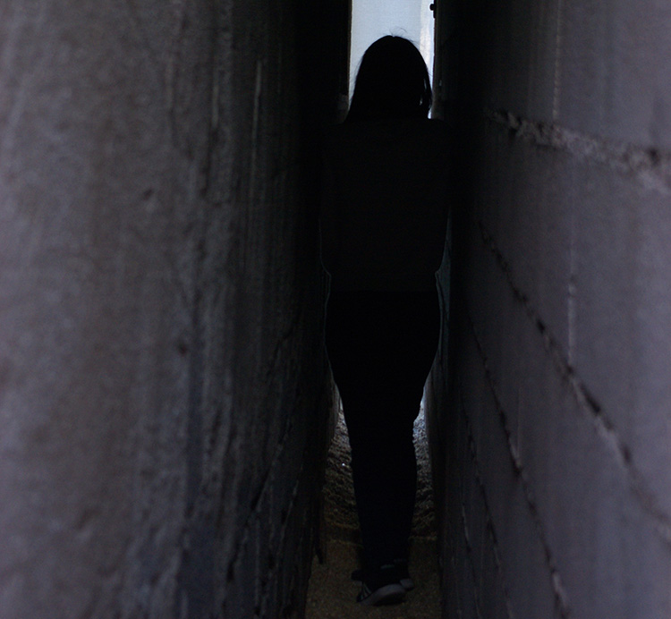 Comment la contrainte physique peut-elle ouvrir sur un nouveau point de vue ? Ce mince espacement est une invitation aux corps téméraires et aux regards curieux de ce qui ne peut être vu. Il est possible de rester à l’entrée de la traverse et de simplement passer la tête dans le couloir, en appuyant sa carrure sur l’encadrement de bois creusé pour que les épaules s’y reposent. Plongée dans la pénombre et pris dans le son transmis par le couloir, cette posture permet déjà d’entrer en contact avec l’installation. Une autre possibilité est de s’y aventurer physiquement, en entrant de biais dans la traverse. Au fur et à mesure de la progression, la sonorité aqueuse réactive l'ouïe, tandis que les pas s’enfoncent dans la sciure fraîche et odorante, ouvrant vers une fenêtre d’eau salée, microenvironnement dont les nuances varient selon les jours, la lumière, le vent, l’humidité, les marées et les tensions des cordes de bateaux. Alors que le corps choisit son degré d’engagement dans la parcelle, une veduta* s’ouvre sur la mer.