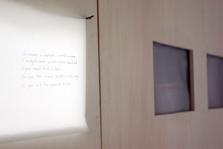 Mars 2018 - je pose mes valises à Ile Rousse pour quelques mois. Je m’oriente à partir du sémaphore de l’île en différents lieux d’observations, canaux de communication, zones d’enregistrements du paysage, de l’activité humaine et des mesures climatologiques. Prises de notes, images et rencontre avec un "veilleur des yeux de la terre"* en résultent. L’horizon s’inverse, le ciel se déplace. Pour cette invitation au J1, parcelle si proche de la mer, c’est une chambre de veille que je propose, où le paysage local répond à ces captations insulaires, jour après jour, tantôt déposées fraîches et vivantes sur le papier, tantôt ancrées dans la porcelaine.