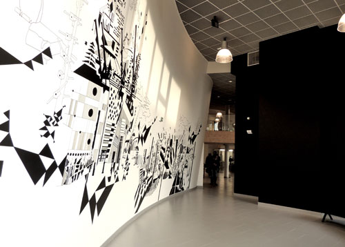 La fresque et les cocottes Ce projet s'inscrit comme une suite logique de mes recherches de dessin vers la 3D avec une intention et une volonté d'observer, de saisir et de retranscrire dans mes lignes, l'espace, l'histoire, la vie, « l'âme » du lieu.