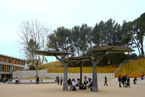 Le site du nouveau collège Joliot Curie (re-baptisé Nathalie Sarraute) est un site naturel remarquable. Il propose un rapport au paysage fort. Un des principaux objectifs du parti d'aménagement a été justement « d'ancrer le projet dans le paysage, de l'insérer harmonieusement dans son environnement ». Il a fallu pour se faire, exclaver des tonnes de roches calcaires, prendre à la nature pour donner à l'homme. Un des éléments significatif de cet environnement est l'arbre, être singulier, tout à la fois familier et étranger. L'arbre a la capacité à désigner, à signifier, voire à exercer une influence en tant que symbole. Il est symbole de l'homme, du cosmos, de la vie. Une symbolique implique un système, une complexité variée, interactive, organisée, totale et finalisée. Les arbres forment des systèmes, dans la nature comme dans l'imaginaire, les théories. En théorie des graphes, une arborescence est un graphe acyclique orienté possédant une unique racine, et tel que tous les noeuds sauf la racine ont un unique parent. En informatique, c'est également une structure de données récursive utilisée pour représenter ce type de graphes. C'est aussi ce principe qui est utilisé dans la représentation généalogique. En Syntaxe, enfin, l'arbre met en évidence la structure hiérarchique de la phrase et de ses constituants.