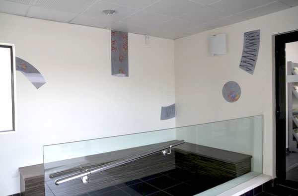 Images lenticulaires de dimensions variables, installées dans le hall d'entrée.