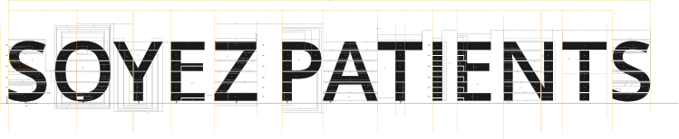 Faite de plaques d'inox miroir, elle est à l'échelle du paysage. Pourtant suivant le sens dans lequel vous traversez la cour, elle est visible ou invisible. Elle est lisible ou illisible. Chaque lettre apparait lorsque l'on se trouve face à elle. C'est une invitation au mouvement.