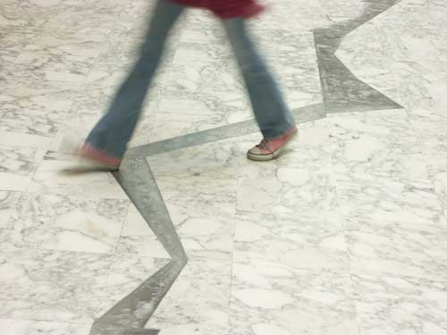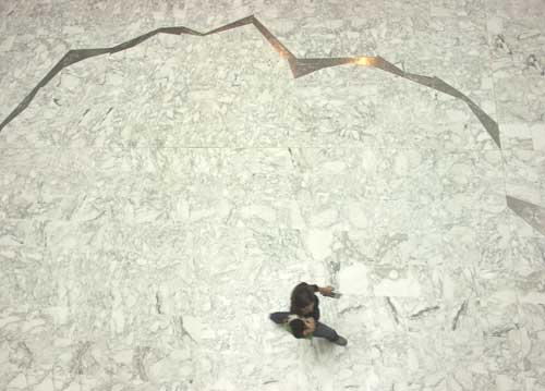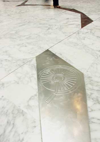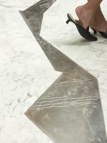 Cheminement de plaque d'acier inox, gravées et enchâssées dans le sol de marbre de la bibliothèque 8000x700 cm |