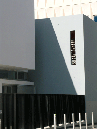 Le projet se présente sous la forme d'une grande surface en inox dans laquelle des lettres sont découpées. Les dimensions du projet sont 346 cm de large par 652 cm de haut.