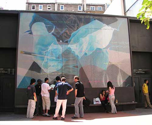 - une sérigraphie monumentale d'une image numérique 6,75 x 4m, et un banc de 6,75 m de long à l'intérieur d'un patio