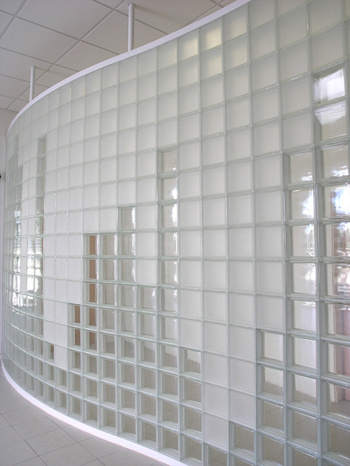 Pavés de verres transparents et lisses et d'autres blancs et opaques. Dimensions: 320 x 580 cm |